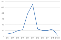 圖1全毬MOCVD機檯纍計安裝量 數據來源:咊訊理財客